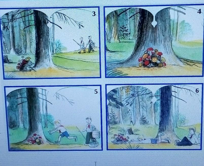 Решили мальчишки пойти в лес по грибы.Долго ходили они по лесу,но не могли найти ни одного грибочка.В это время ёжик тоже решил пособирать грибов.Он быстрее мальчишек собрал себе на иголки очень много грибов,и решил отдохнуть.Лег он под дерево и уснул.Мальчишки увидели грибочки,и не заметили,что это ёжик.С радостью решили они подобрать грибочки.Ежик подумал что они хотят его поймать, и побежал к себе домой.А мальчики,не видя ёжика подум али что горка живая,и очень испугались