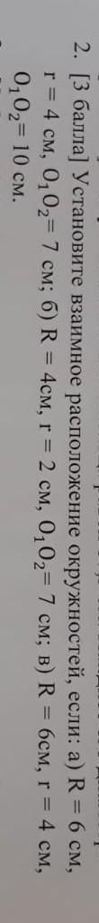 Установите взаимное расположение окружностей, если: а) R = 6 см,