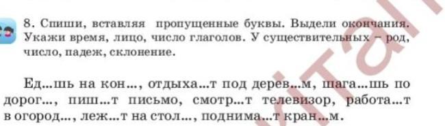 Едешь на коне отдыхает под деревом шагаешь по дороге пишет письмо смотрит телевизор работает в огороде лежит на столе поднимает краном