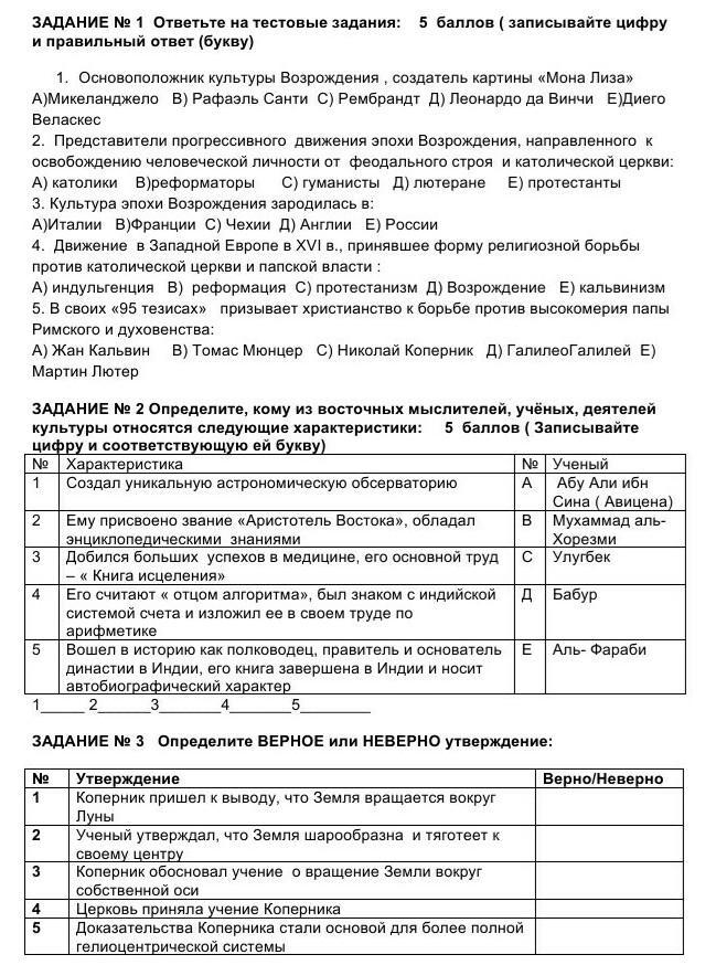 ЗАДАНИЕ № 1 Ответьте на тестовые задания: 5 баллов ( записывайте цифру и правильный ответ (букву)