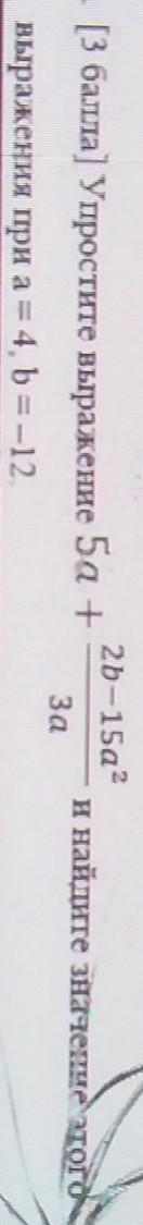 5а+2б-15а^2/3а = 20 + -24-240/12 = 20 + -24-20/1 = 20+ (-44) = -24