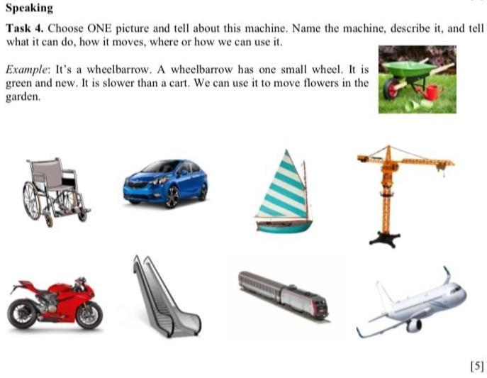 Task 4. Choose ONE picture and tell about this machine. Name the machine, describe it, and tell what it can do, how it moves, where or how we can use it.