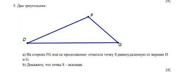 на прямой DG, такую, что SD = SG.