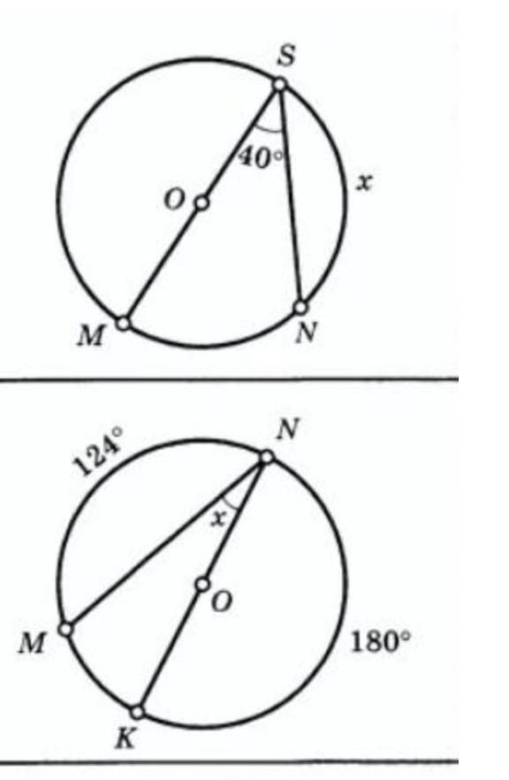 дуга NMK=180°. почему мы можем понять сверху ^. => дуга МК=180°-дуга MN => дуга МК=180°-124°=56°