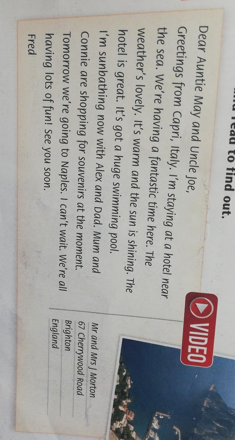 5.UE10 Read the postcard and answer the questions. Then list