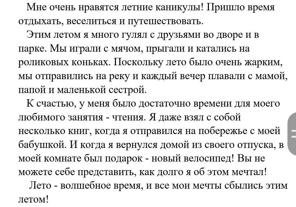 Летние каникулы, отдыхать, друзья, жарким, чтение, подарок велосипед.