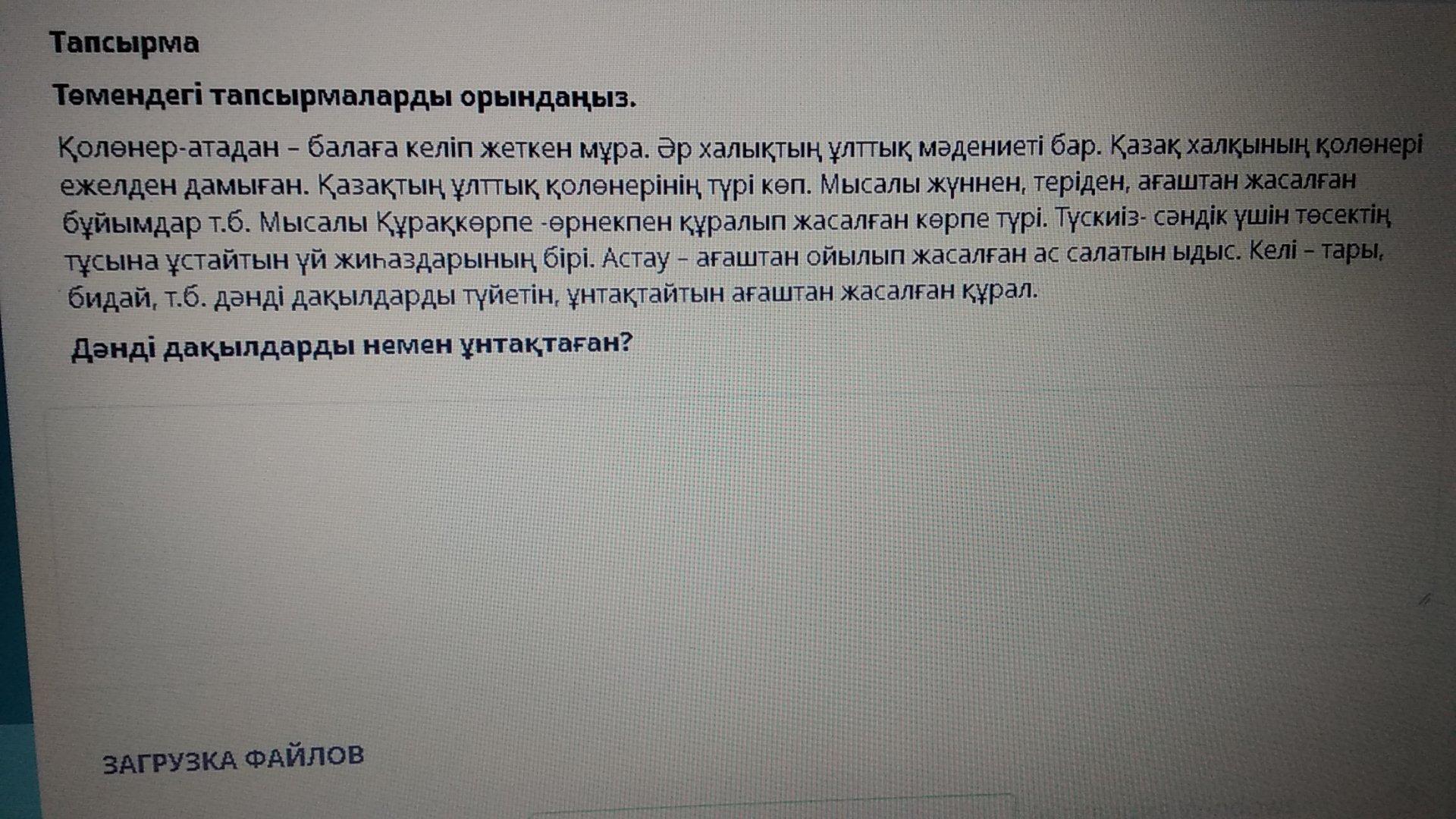 Дәнді - дақылдарды ұнтақтауды ағаштан жасаған. Яғни ағаш келіде түйген. Сонымен қатар қол дирмені болған, ортасына қуырылған дәнді - дақылдарды жайлап салып, тасты дирменді айналдыру арқылы майдалаған.