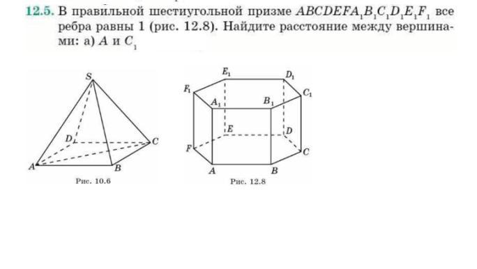 В правильной шестиугольной призмы ABCDEFA1B1C1D1E1F1, все ребра равны 1 , найдите расстояние между вершинами A и C1.