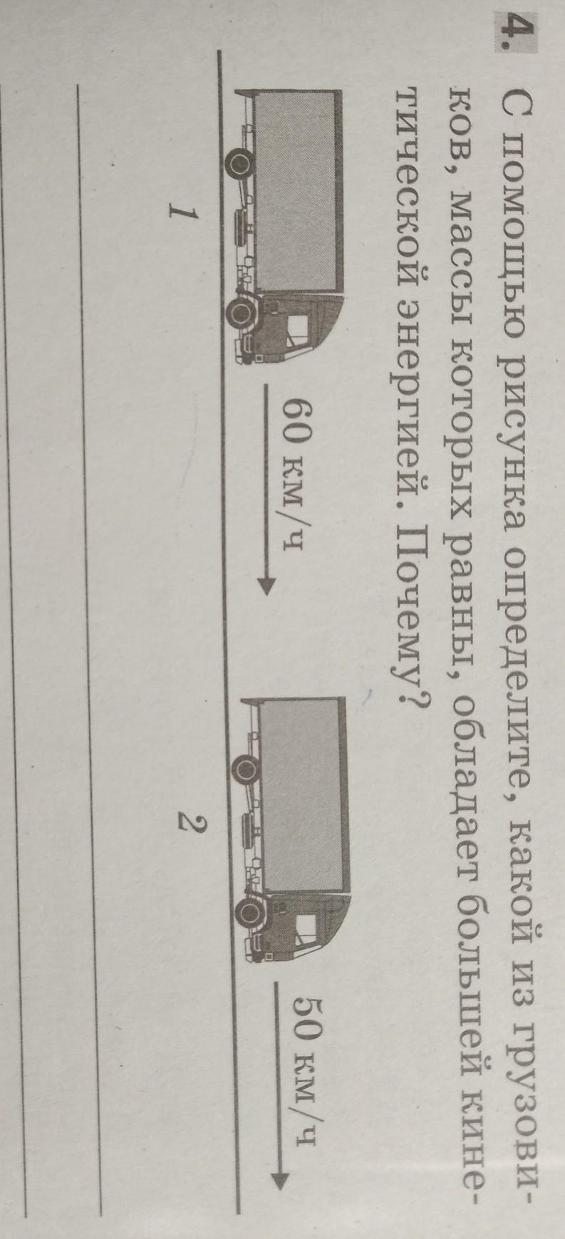 Если считать массы грузовиков равными, то энергия будет большей у того, у кого больше скорость