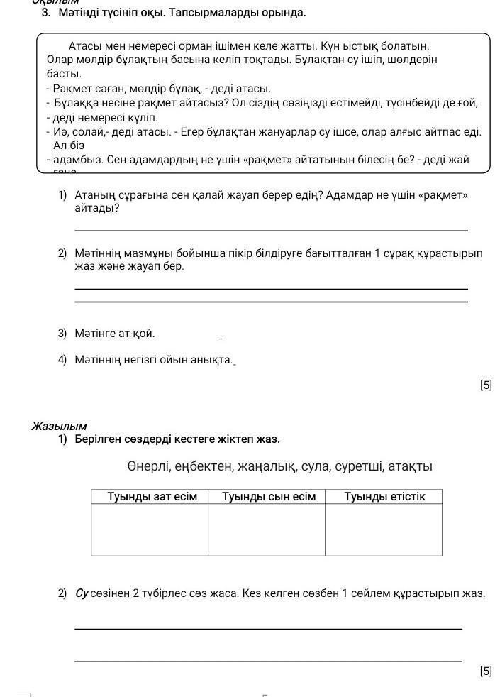 2) Су сөзінен 2 түбірлес сөз жаса. Кез келген сөзбен 1 сөйлем құрастырып жаз