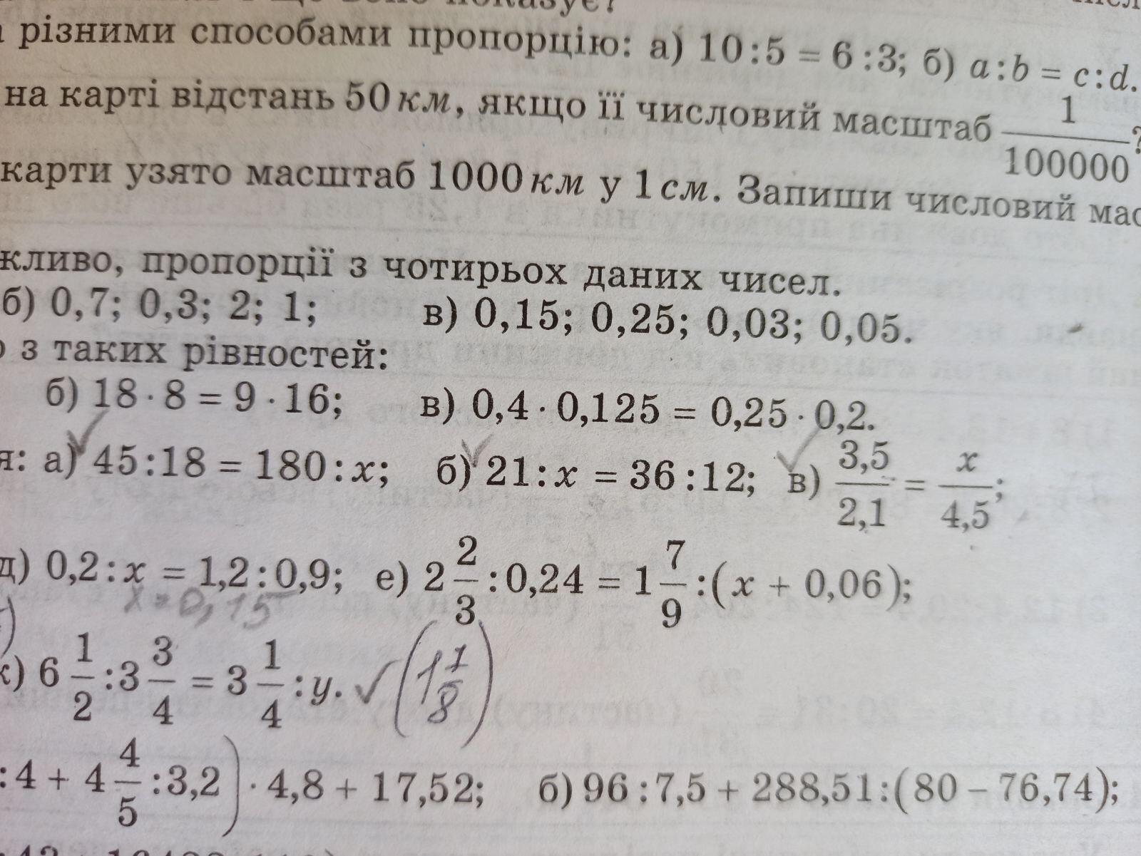 в) x = 3,5 × 4,5 / 2,1 = 7,5