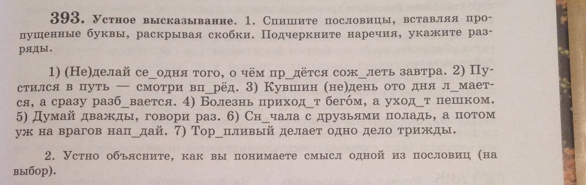 Не делай сегодня того, о чем придется сожалеть завтра. пустился в путь- смотри вперед. кувшин не день ото дня ломается а сразу разбивается. Болезнь приходит бегом, а уходит пешком. Думай дважды, говори раз. Сначала с друзьями поладь, а портом уж на врагов нападай. Торопливый делает одно дело дважды.