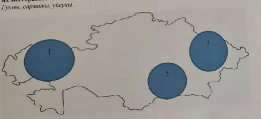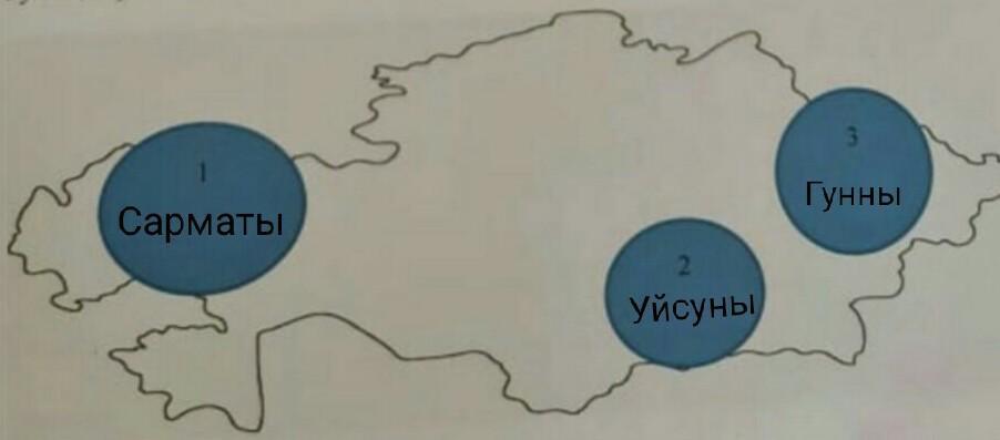 2. Подпишите на карте названия племен Древнего Казахстана из приведенного списка, согласно их месторасположения. (3 бал)
