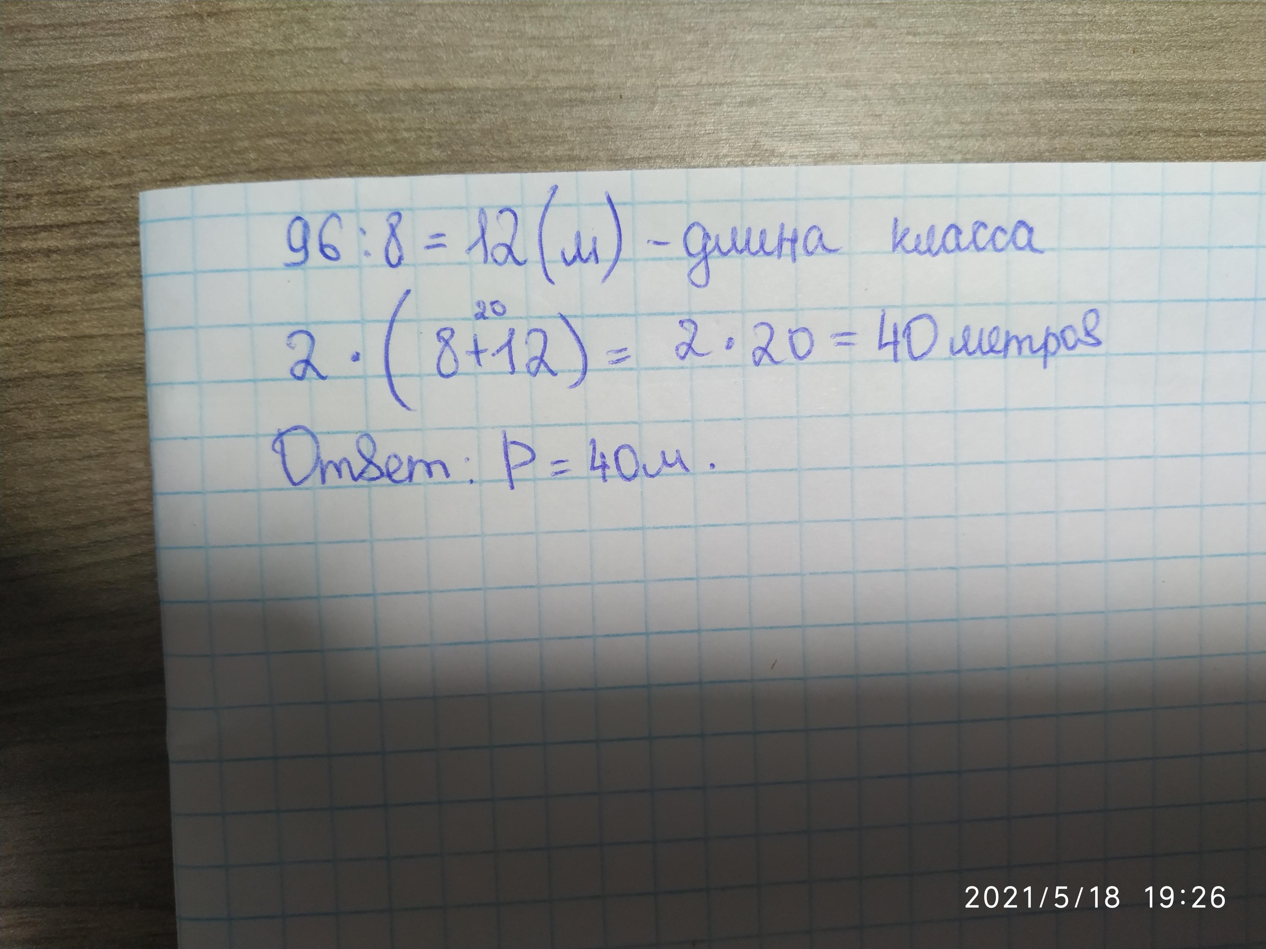 2)(12 + 8) * 2 = 40м - периметр комнаты