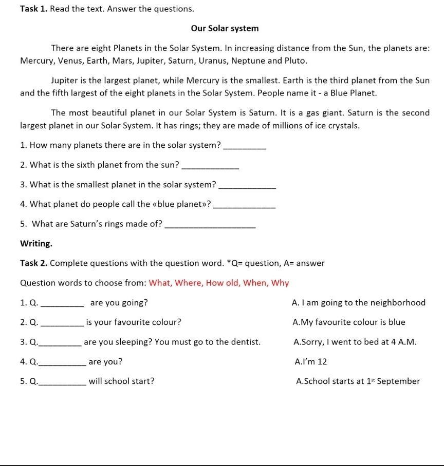 1. How many planets there are in the solar system?