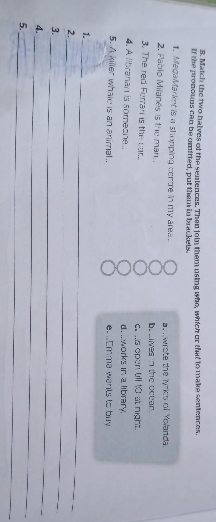 1-c which 2- a who 3-e (which) 4-d who 5-b which