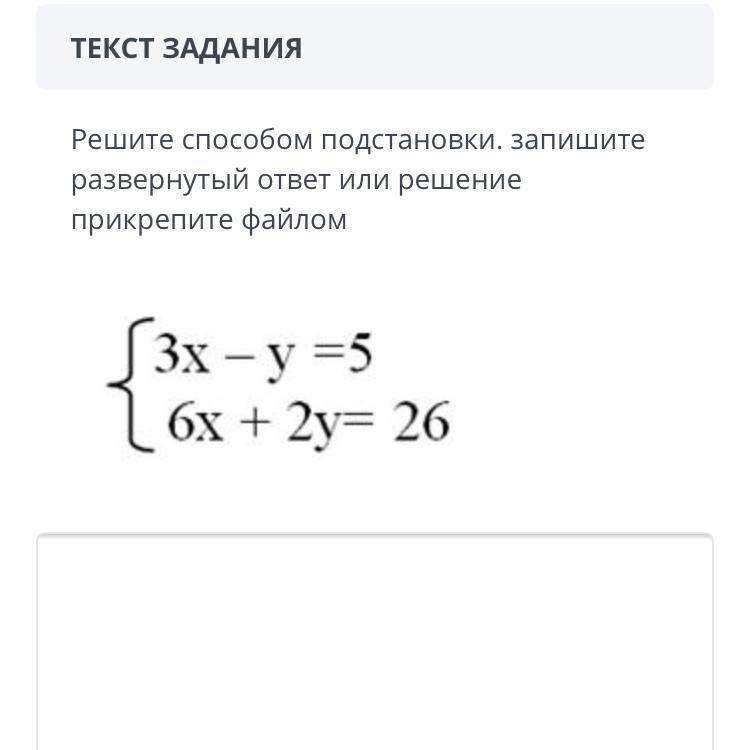 Решите способом подстановки. запишите развернутый ответ или решение прикрепите файлом