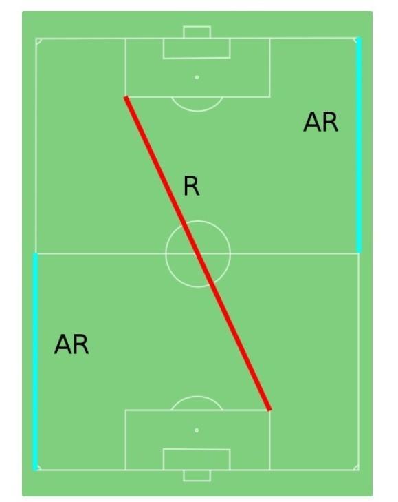 Можно узнать как стоят арбитры в футболе, в зависимости от количества, например их 7 и как они на схеме поля будут стоять и какую функцию выполнять?