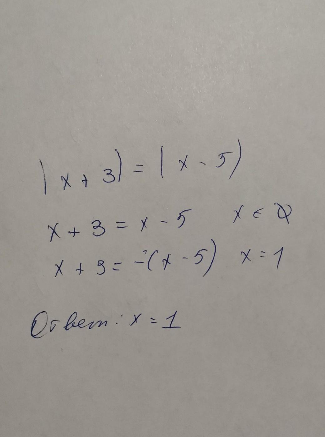 Поэтому решить уравнение |x-(-3)|=|x-5| означает найти x, находящийся на одинаковых расстояниях от - 3 и 5. Ясно, что такой x является серединой отрезка [-3;5]. А середина является средним арифметическим концов, иными словами, их полусуммой.