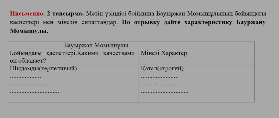 қасиет- шыдамды, батыр, мықты, сыйлы.