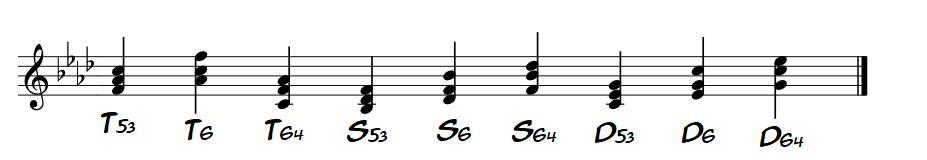 Постройте последовательность аккордов (Т53 Т6 Т64, S53 S6 S64, D53 D6 D64) в фа миноре