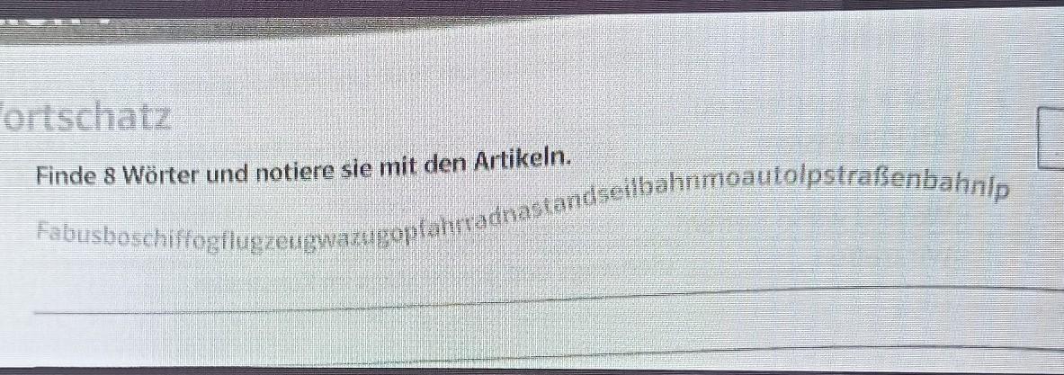 Finde 8 Wörter und notiere sie mit den Artikeln.