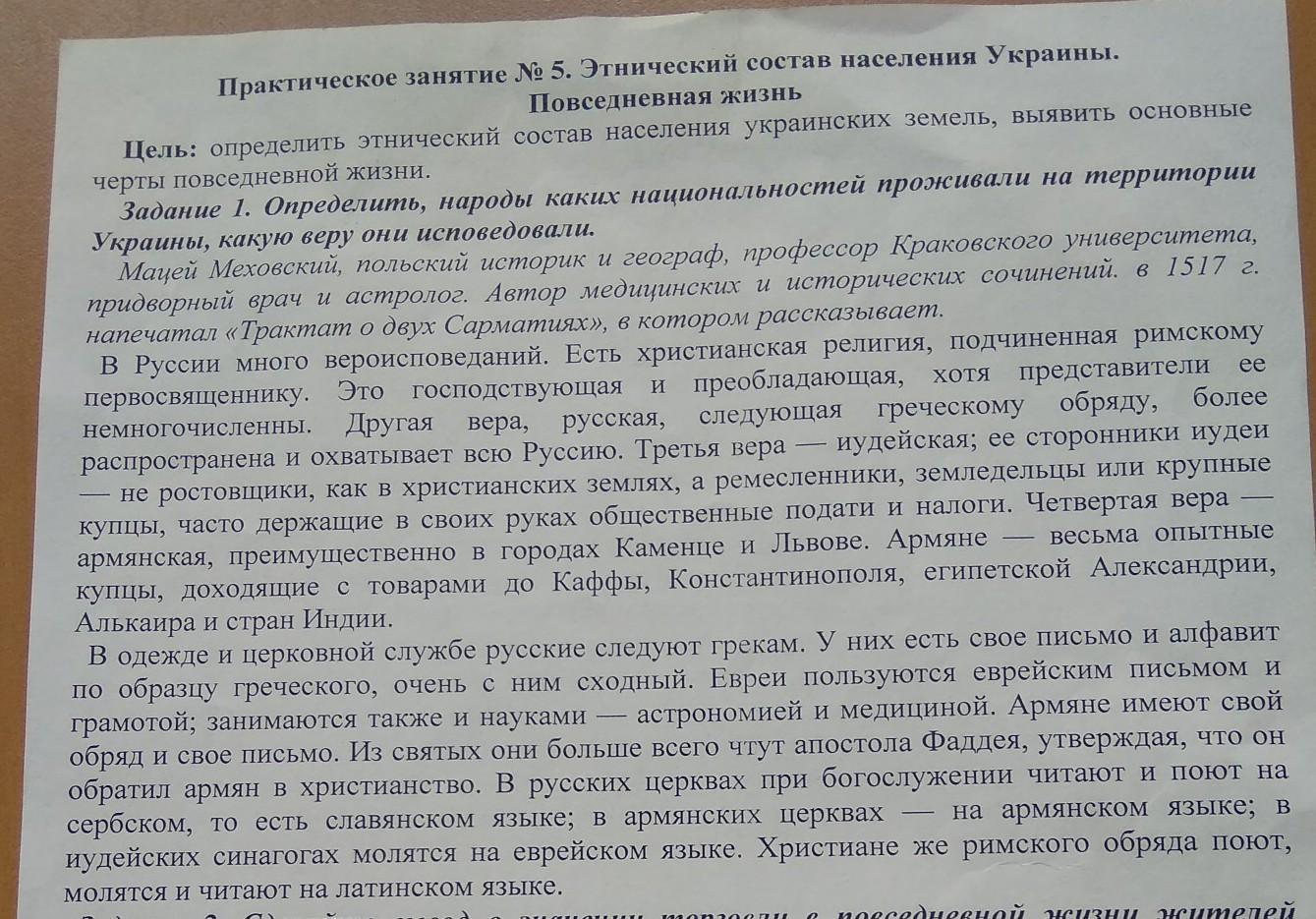 В тексте указано, что на территории Украины проживали русские (вероятно имеются ввиду восточные славяне), армяне и евреи. Говорится о четырех религиях: католичество, православие, иудаизм и ислам.