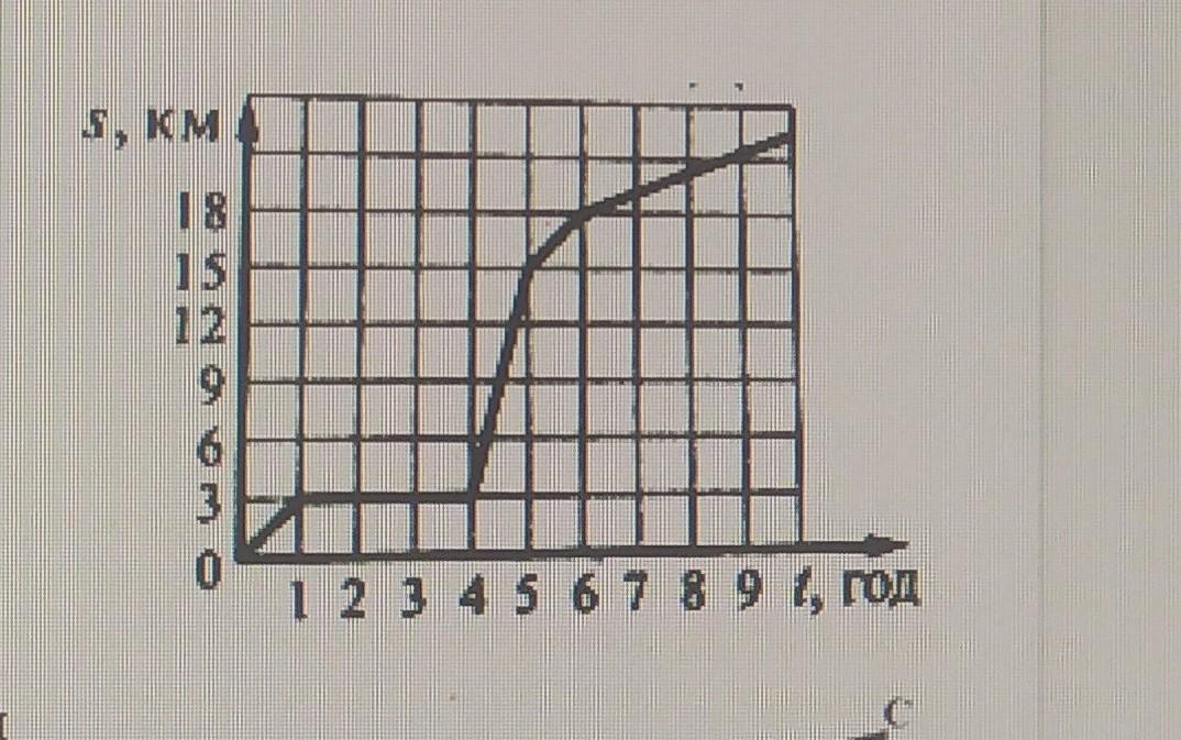 На рисунку зображено графік зміни руху туриста. Через скільки годин після початку виходу з табору турист був на відстані 18км від табору