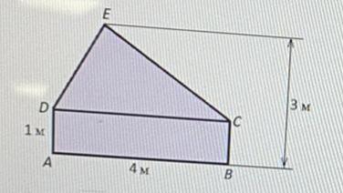 Проведем высоту треугольника из угла Е к стороне DC. Эта высота h будет равна 3 - 1 = 2 м. Сторона треугольника, к которой мы провели высоту: DC = 4 м. Итак площадь треугольника: Sтр = 1/2 * 4 * 2 = 4 м².