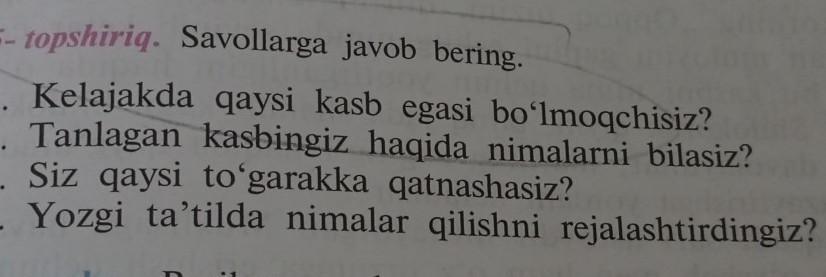 4. Yozgi ta'tilda nimalar qilishni rejalashtirdingiz?