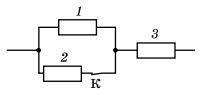 3. Три резистора сопротивлениями R = 10 Om, R, = 40 Om, R, = 30 Ом соединены так, как показано на рисунке, и подключены к источнику постоянного напряжения 19 В. к a) Чему равна мощность тока в данном участке цепи? б) Чему равна мощность тока в каждом резисторе? b) Увеличится или уменьшится мощность тока в третьем резисто- ре, если разомкнуть ключ К? Во сколько раз?