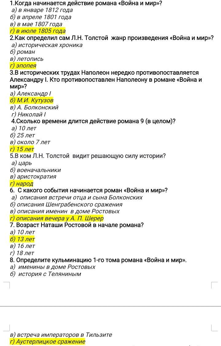 8. Определите кульминацию 1-го тома романа «Война и мир».