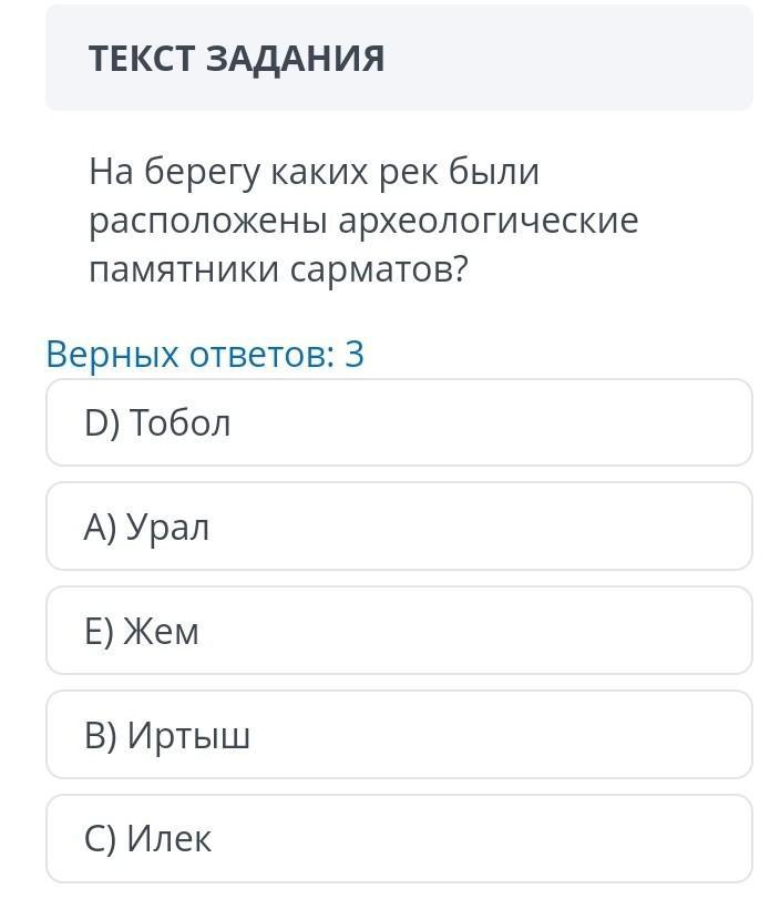 А) Урал B) Иртыш D)Тобол