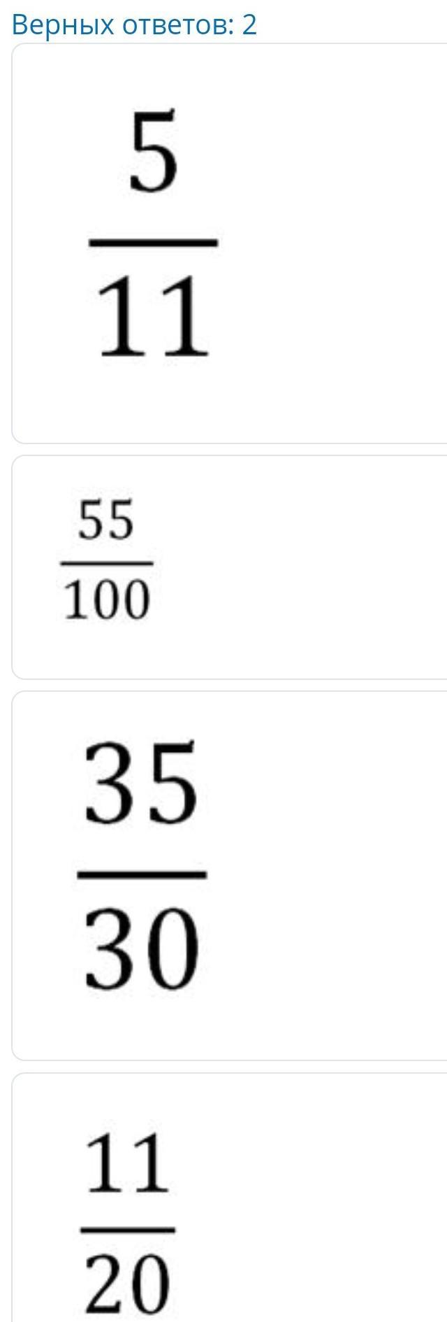 если надо 2 ответа, то пиши оба. Если один - то 11/20 . Это получается при сокращении дроби