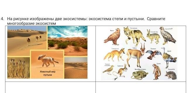 На рисунке изображены две экосистемы: экосистема степи и пустыни. Сравните многообразие экосистем