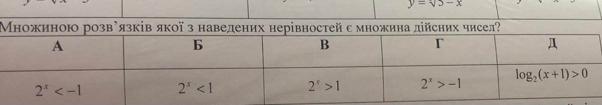 Выражение 2ˣ всегда положительно, поэтому неравенство 2ˣ > –1 верно при любых действительных значениях x.