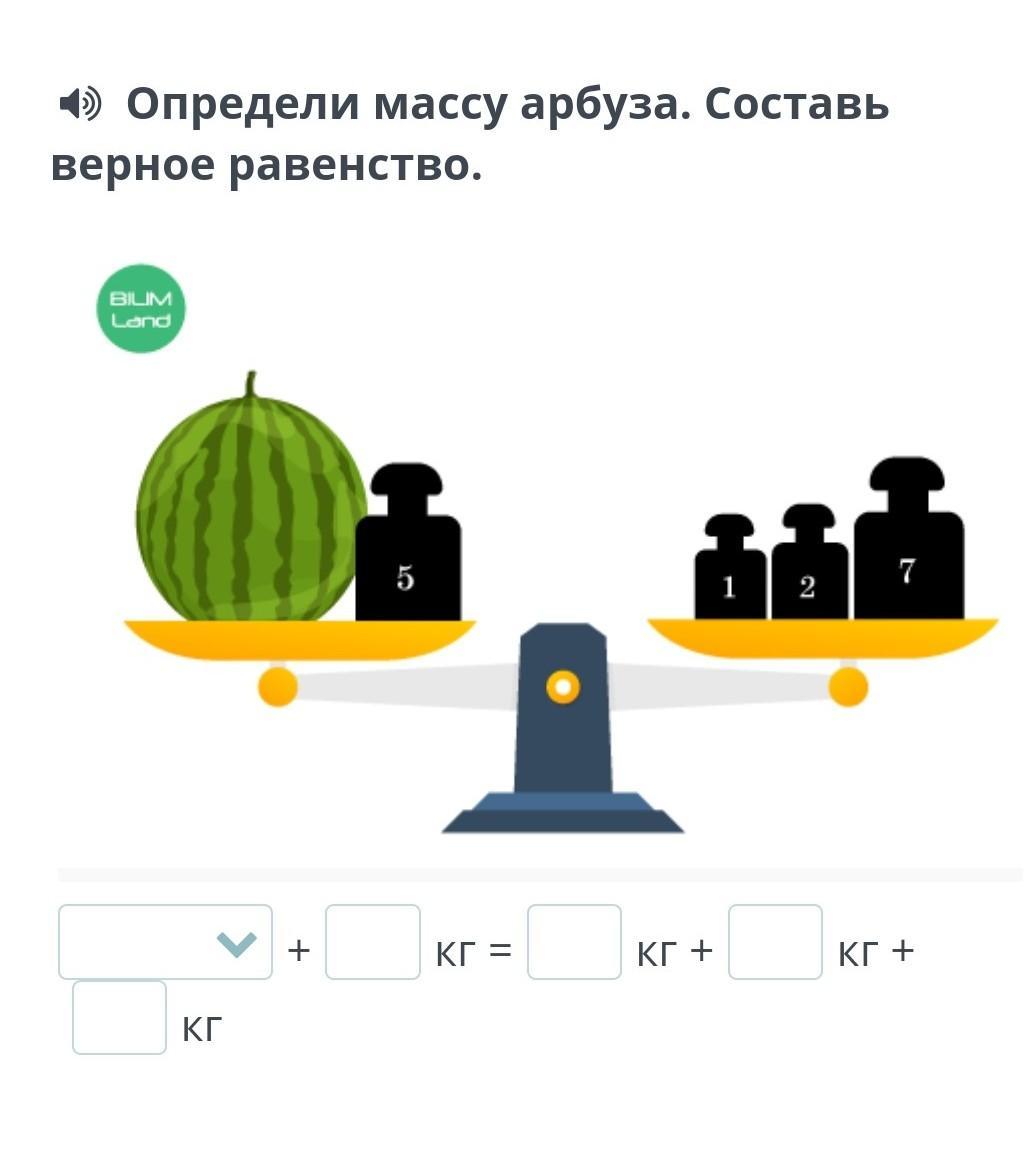 Масса арбуза + 5 кг = 1 кг + 2кг + 7кг.