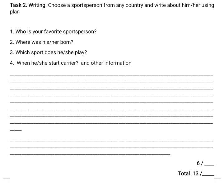 Task 2. Writing. Choose a sportsperson from any country and write about him/her using plan