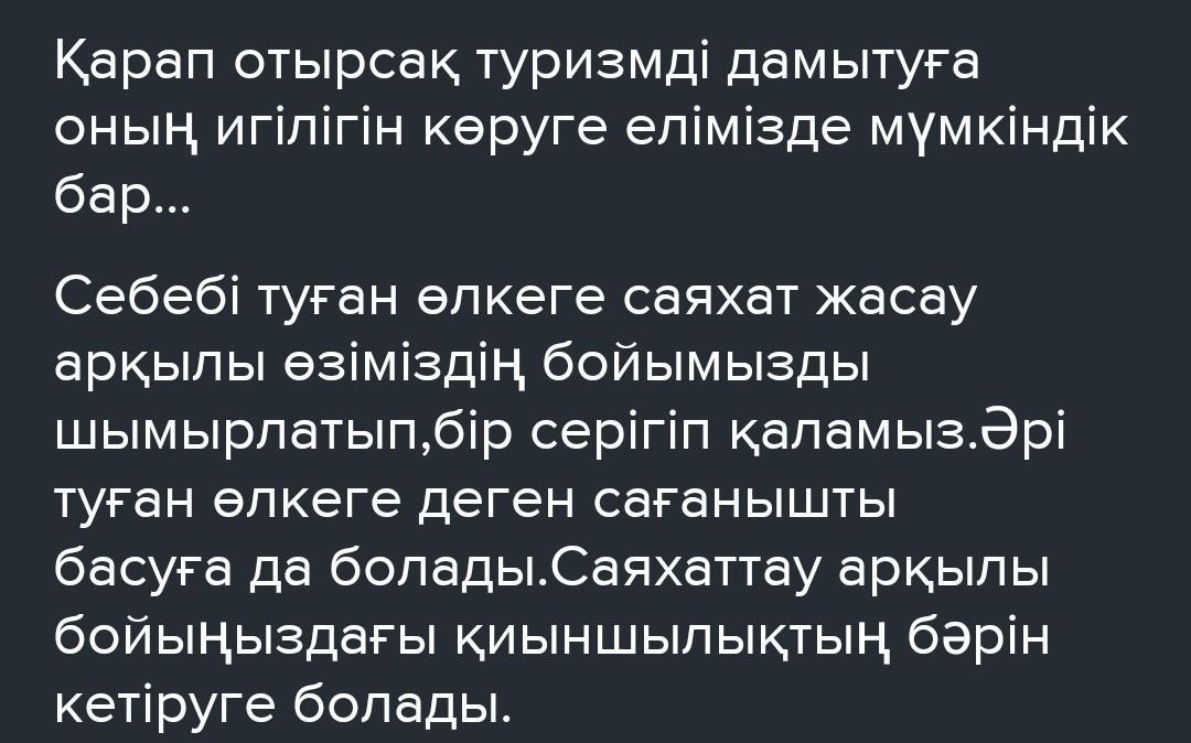 Қарап отырсақ, туризмді дамытуға,керемет демалыс уақыты, көп қаражат, оның