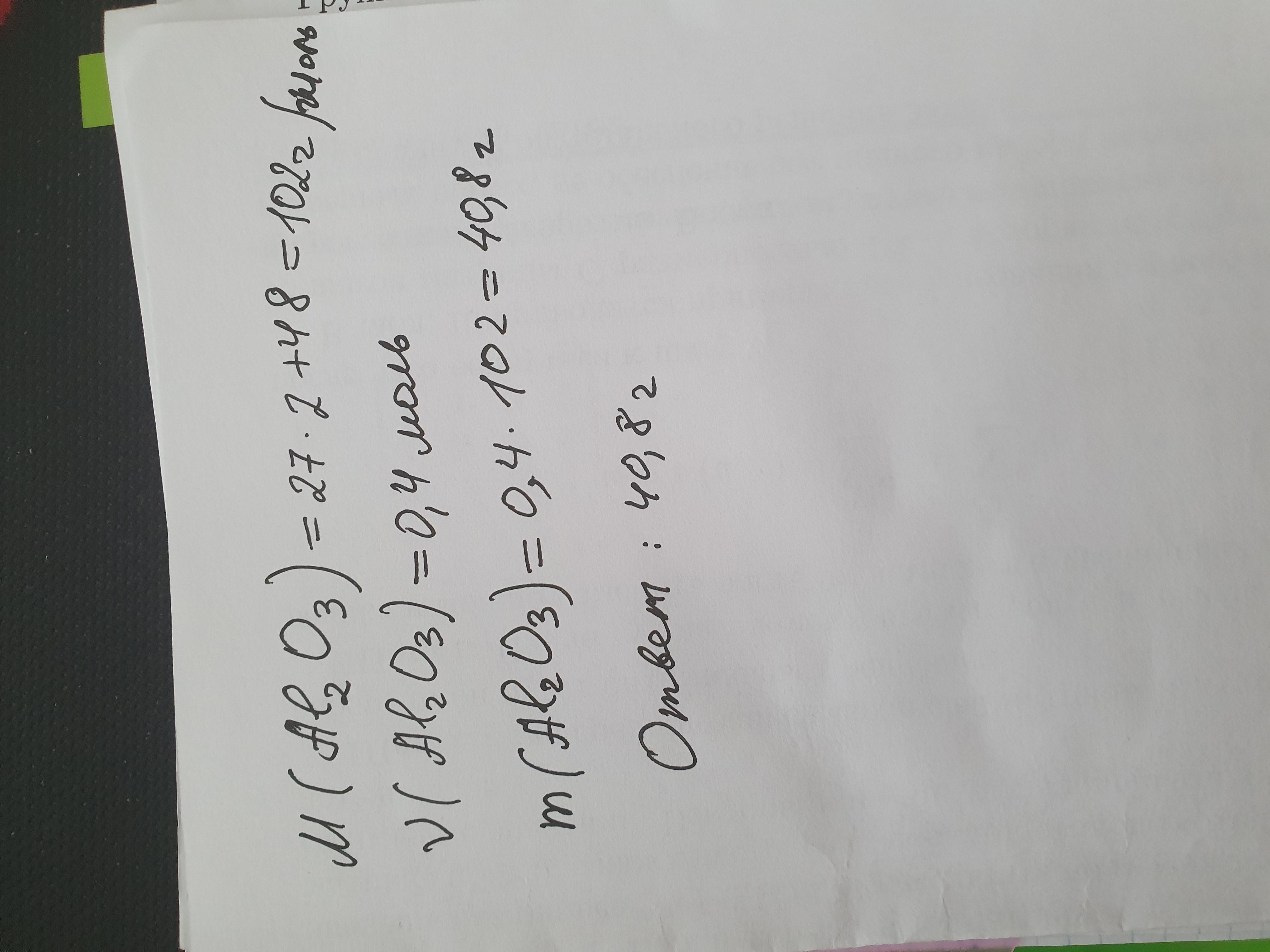 Решите задачу: вычислите массу и объем оксида алюминия количеством вещества 0,4 моль.