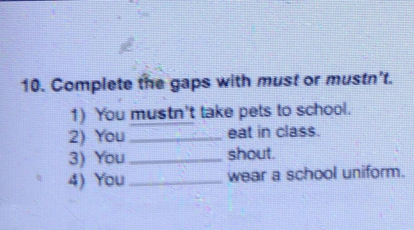 10. Complete the gaps with must or mustn't.
