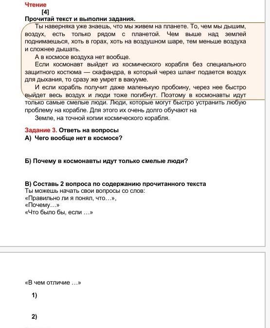 В) Составь 2 вопроса по содержанию прочитанного текста