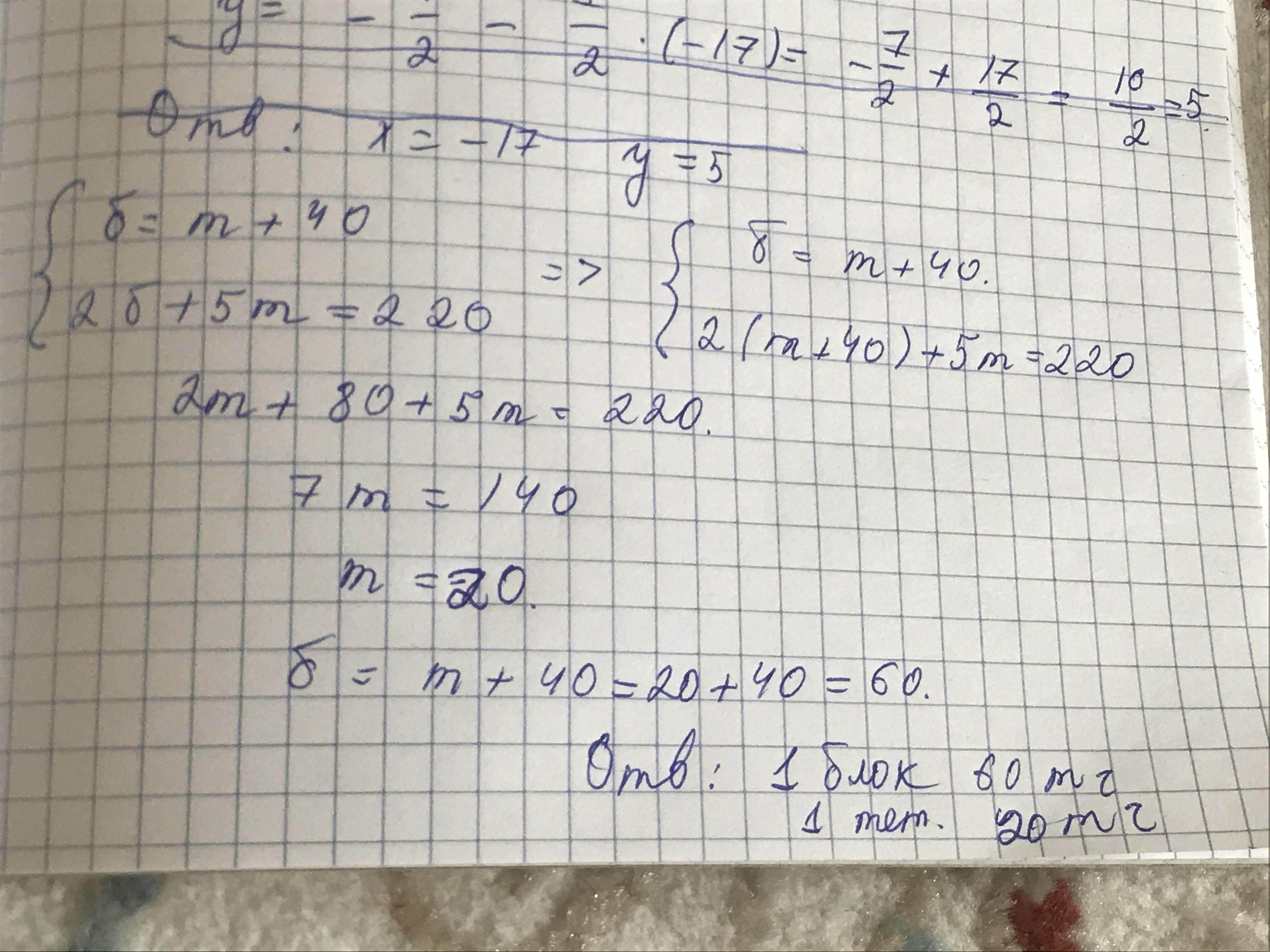 Блокнот дороже тетради на 40 тенге. За 2 блокнота и 5 тетрадей заплатили 220 тенге. Найдите