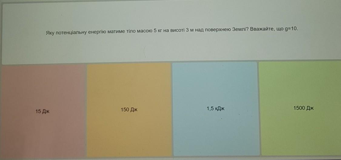 Яку потенціальну енергію матиме тіло масою 5 кг на висоті 3 м над