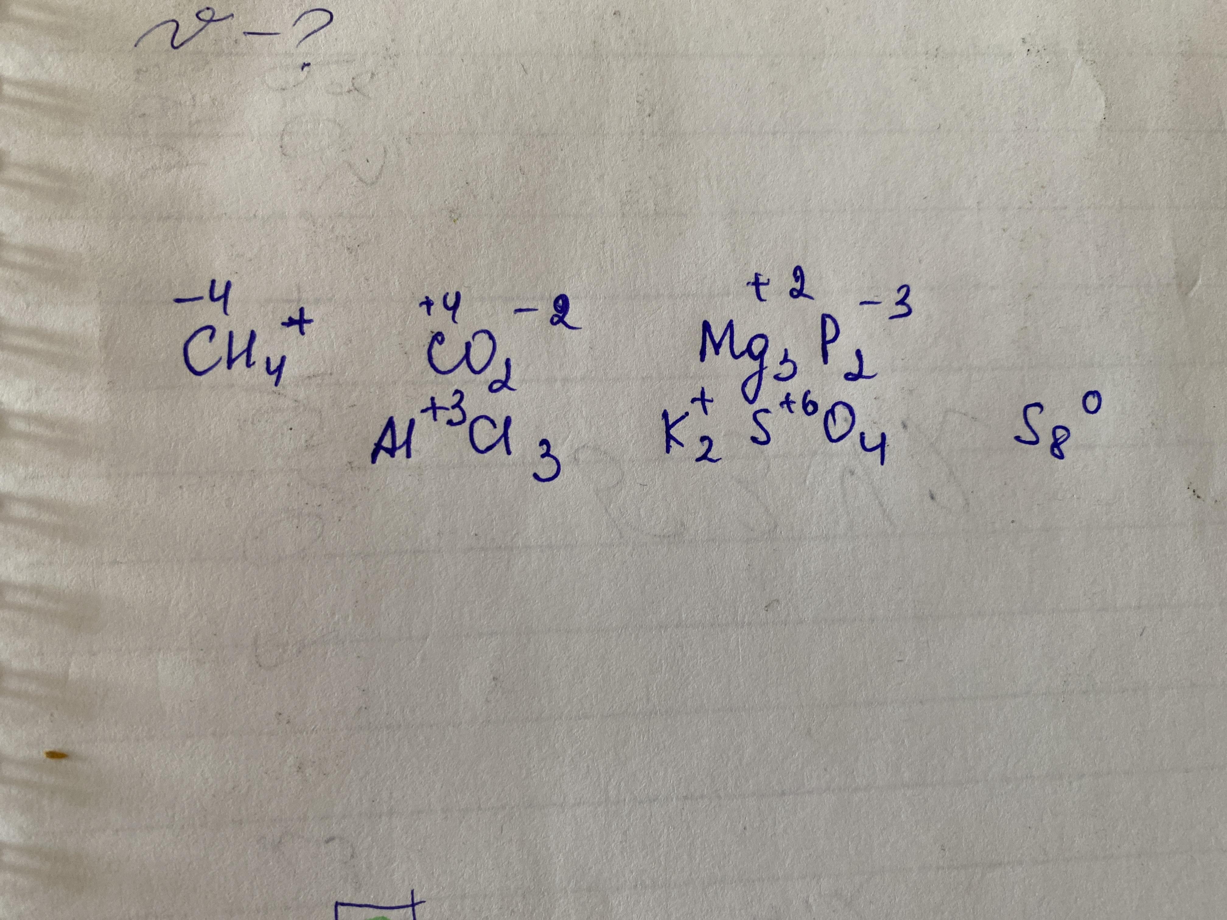 определите степени окисления атомов элементов в соединениях : CH4, CO2, Mg3P2, AlCl3, K2SO4, S8