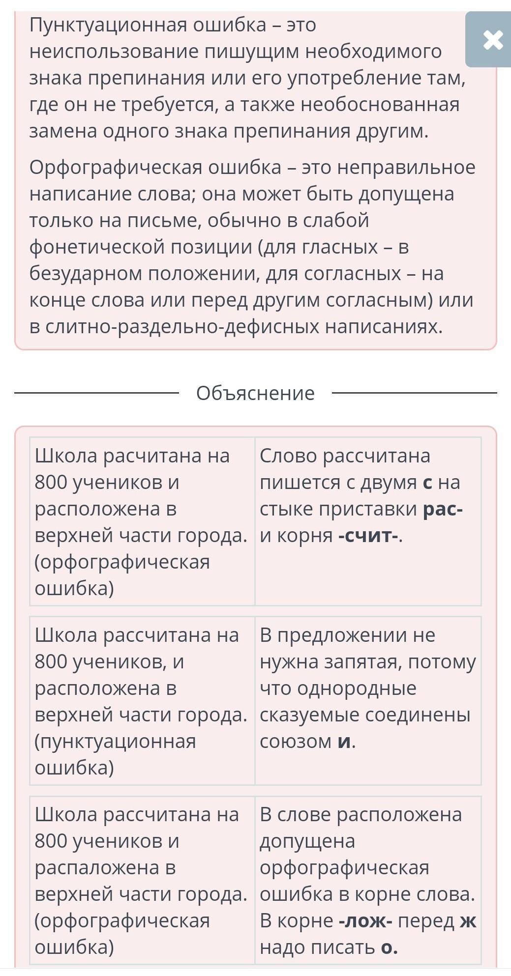 там нужно выбрать из трёх пунктуационная ошибка орфографическая ошибка ошибки отсутствуют