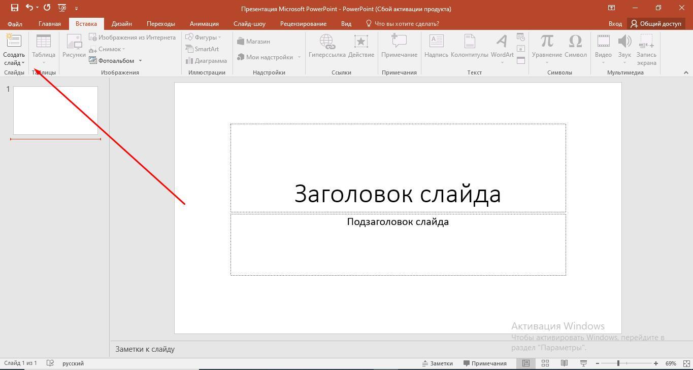 В каком разделе меню окна программы Power Point находится команда Создать (Новый) слайд?