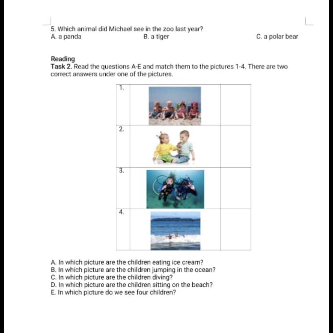 4. b) Children are jumping in the ocean