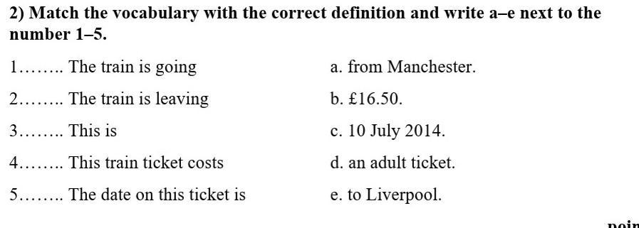 1…….. The train is going a. from Manchester.
