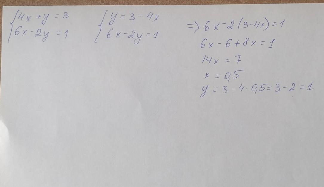 у = 3 - 4 · 0,5 = 3 - 2 = 1